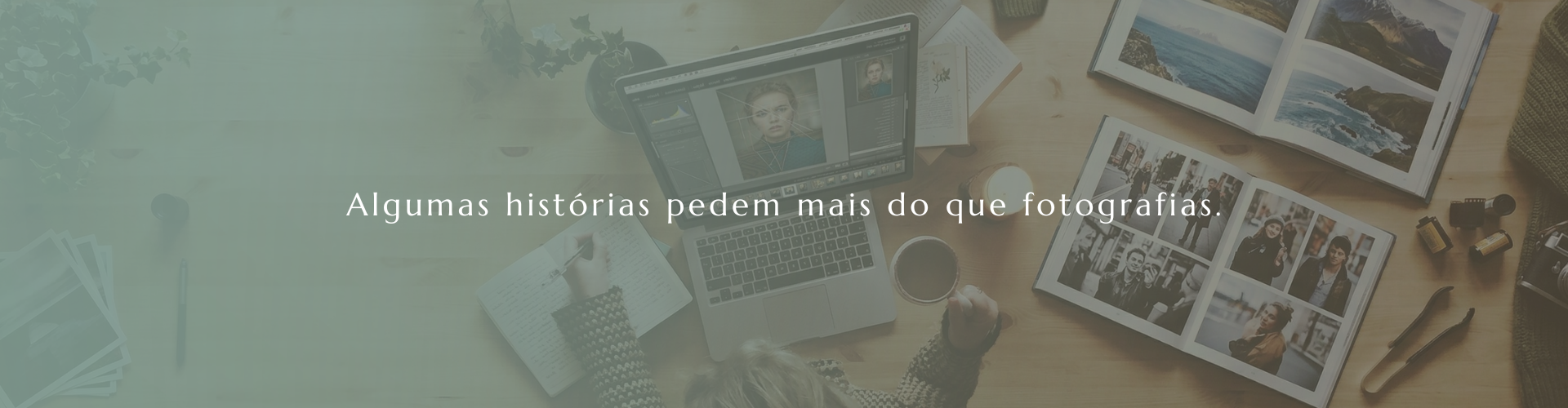 Se nos formatos essenciais organizamos fotografias com forma e ritmo, aqui aprofundamos a escuta. A partir de uma conversa dedicada, interpretamos a história por trás das imagens e construímos um livro que une palavras e fotografias.